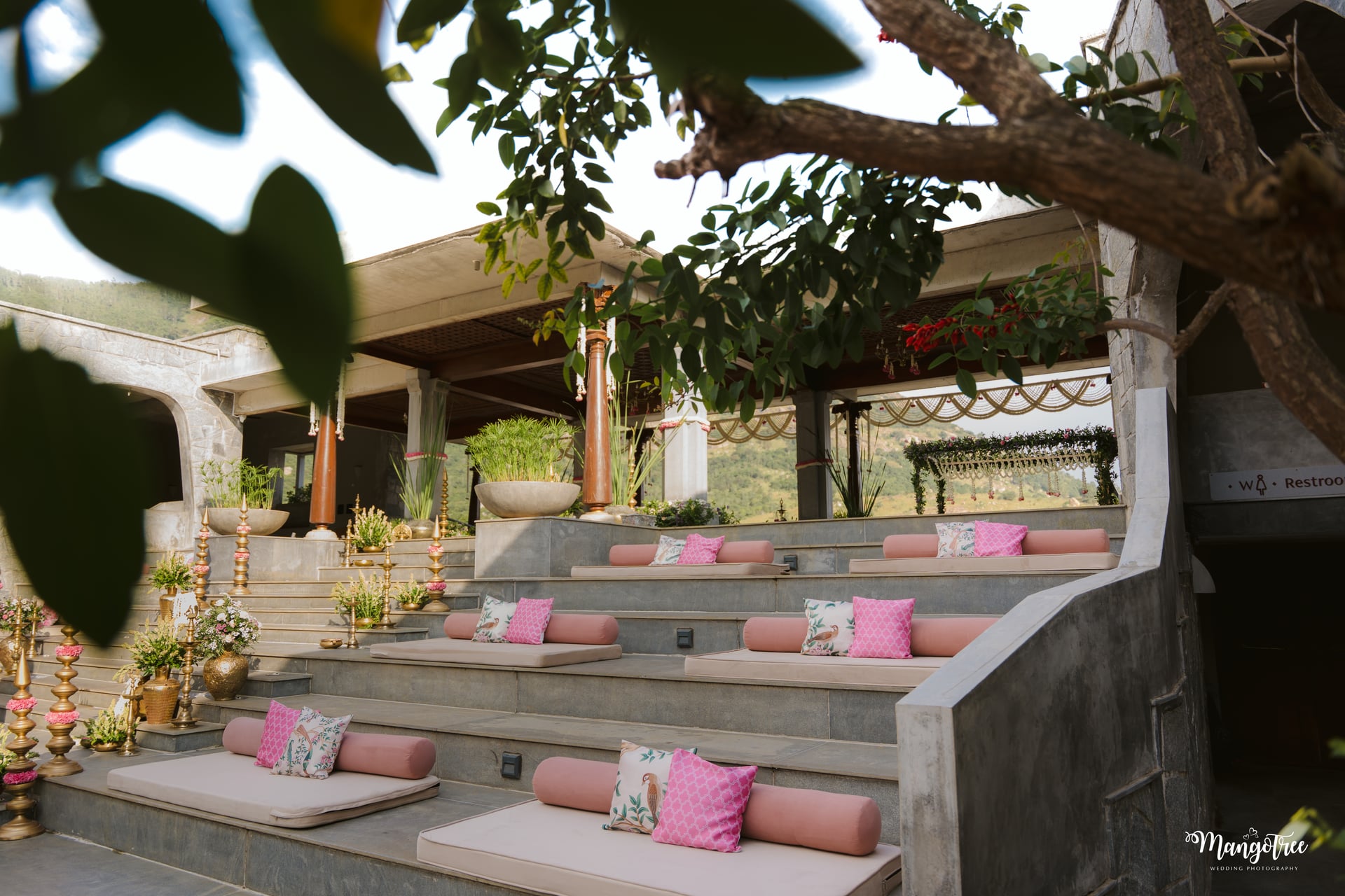 Amita Rasa is one of the most sought-after luxury wedding venues near Bangalore. Nestled among hills and greenery, it offers an architectural style that blends stone, open spaces, and nature.
